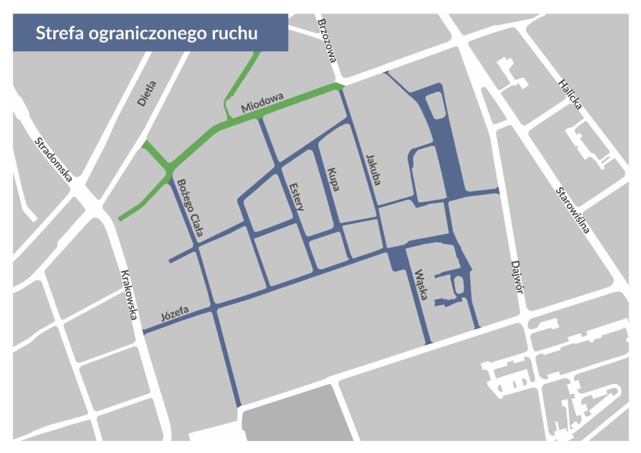 Budząca spore kontrowersje strefa obowiązuje między innymi na ulicach Bożego Ciała, Estery, Kupa, Jakuba i Wąskiej. W weekendy ograniczenia obejmą też część ulicy Miodowej (od skrzyżowania z Brzozową).