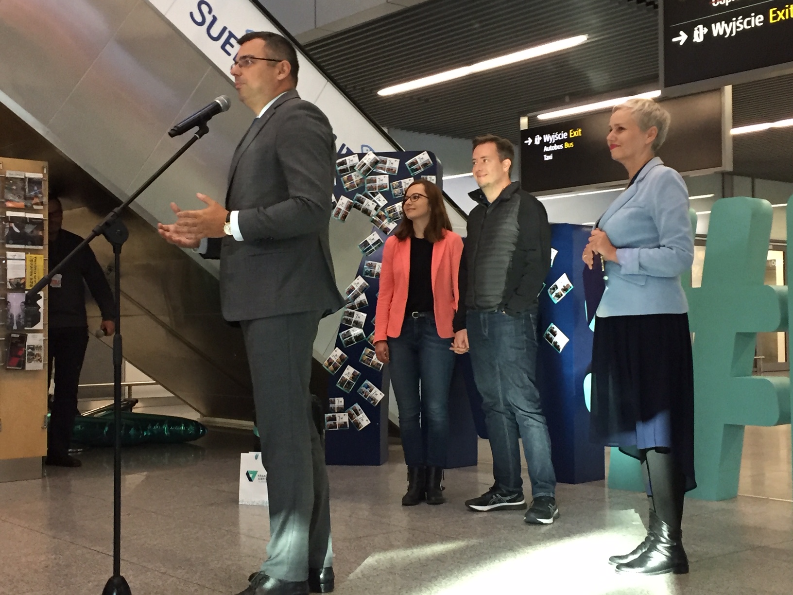 Pasażera na krakowskim lotnisku powitał Radosław Włoszek, prezes Zarządu Kraków Airport. Przy okazji przypomniał plany inwestycyjne lotniska: „Przed nami kolejne wyzwania, konsekwentny rozwój siatki połączeń oraz wdrożenie Planu Generalnego z budową nowej drogi startowej, rozbudową terminala pasażerskiego i terminala cargo. Konsekwencją tej inwestycji będzie powstanie ponad 10 tysięcy miejsc pracy oraz dalszy rozwój gospodarki Krakowa i całego regionu.” - wyliczał Radosław Włoszek.