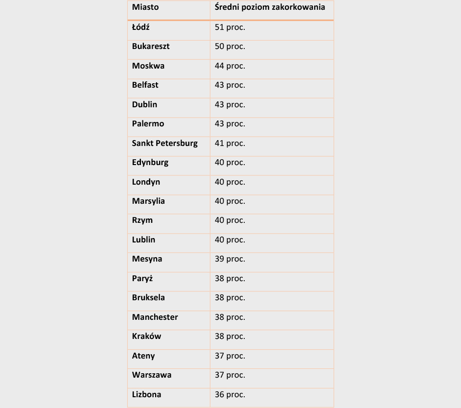 Niedawno wpadła mi w ręce tabela prezentująca najbardziej zakorkowane miasta Europy. Okazuje się, ze największe zatory samochodowe są w Łodzi. O ironio.