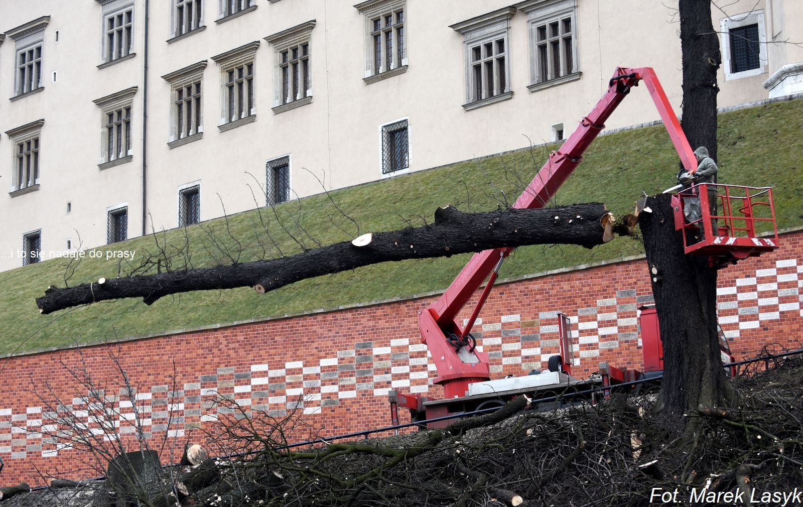 Ze względu na osłabienie skarpy na Drodze Królewskiej przy wejściu na Wawel od strony Bramy Herbowej zadecydowano o natychmiastowym wycięciu trzech drzew. Osłabienie skarpy nastąpiło po porannym zawaleniu się starego muru oporowego w wyniku czego zginął pracujący tam robotnik.
