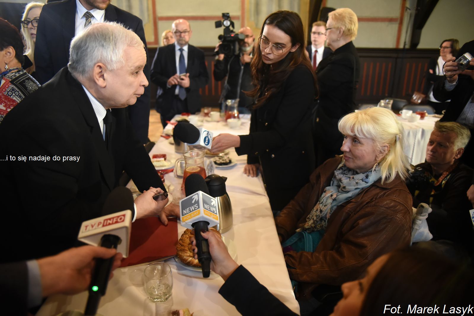 Spotkanie prezesa PiS Jarosława Kaczyńskiego z seniorami. N/z Jarosław Kaczyński do niepełnosprawnej: "...tylko nie przeszkadzajcie".