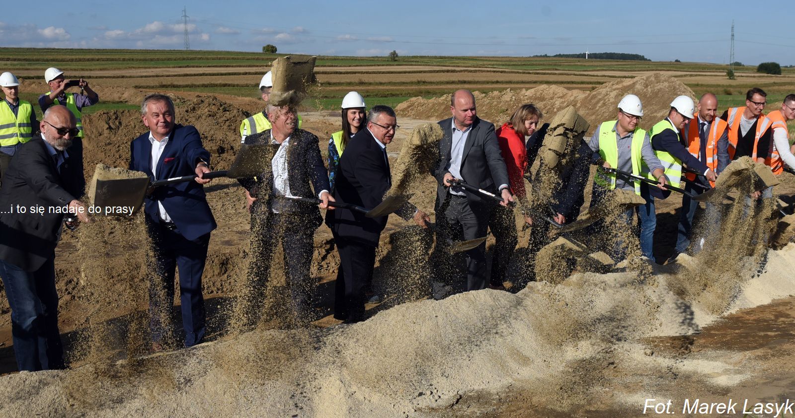 Uroczyste wbicie pierwszej łopaty na budowie odcinka drogi ekspresowej S 7 od węzła Szczepanowice do węzła Widoma z udziałem ministra Andrzeja Adamczyka.