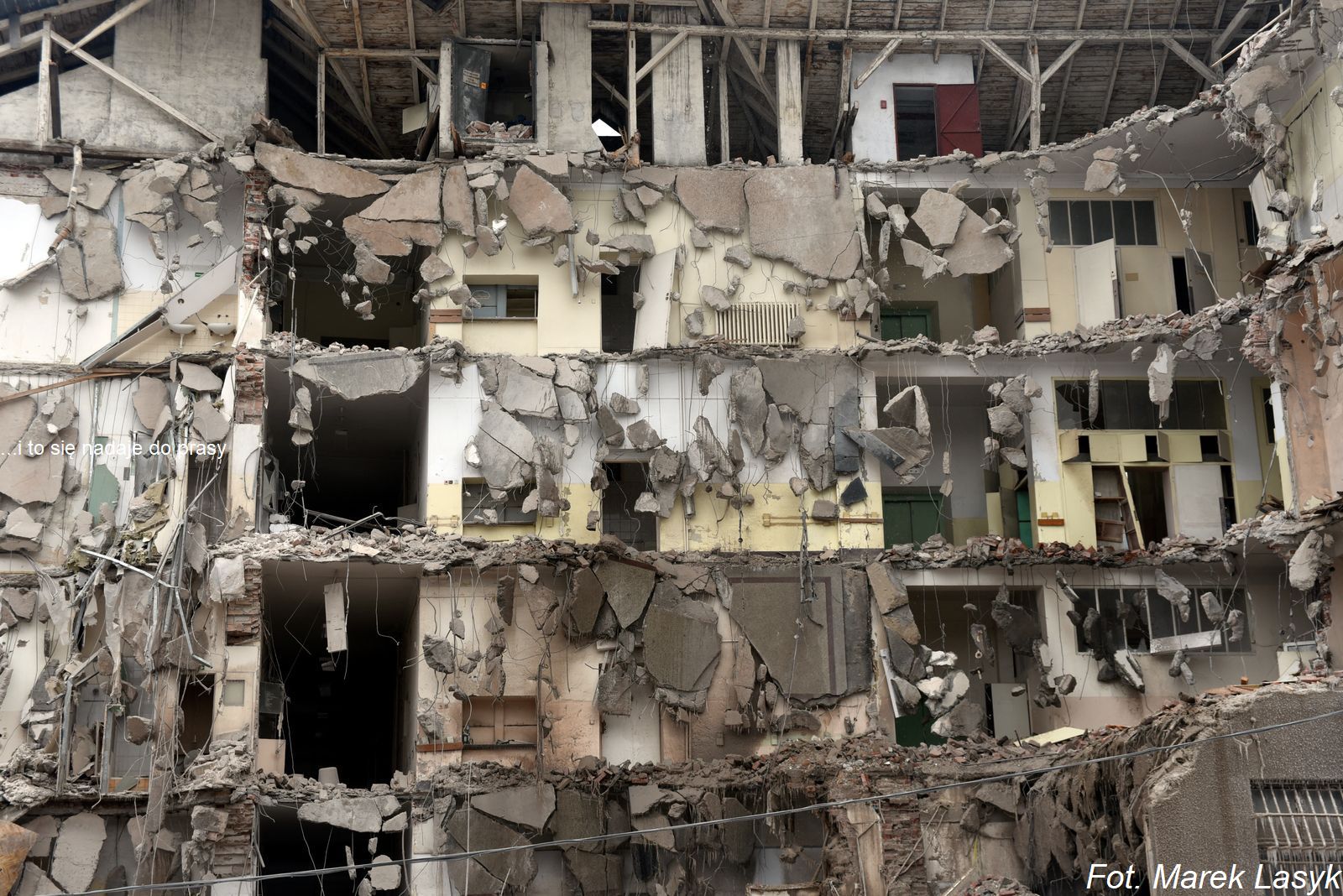 Wyburzanie starego Szpitala kolejowego przy ul. Lea.