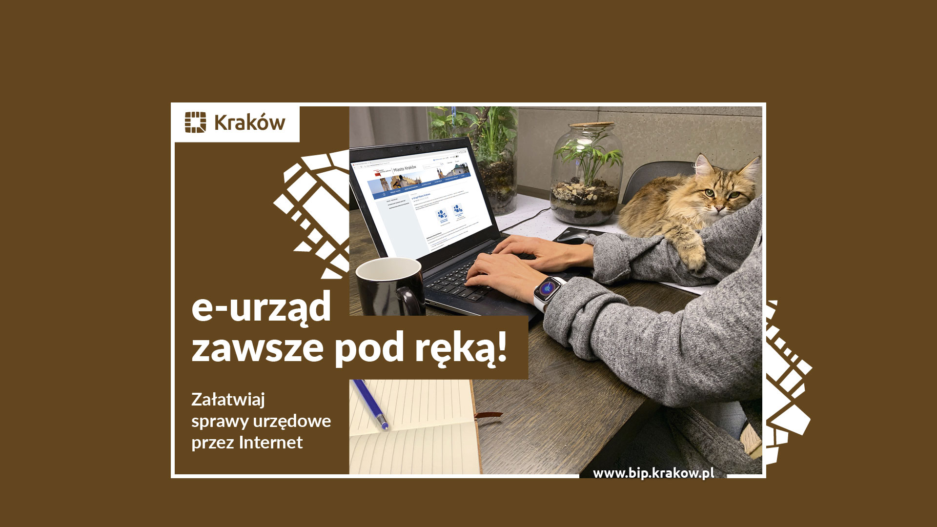 Zza własnego biurka, nie wychodząc z domu o dowolnej porze dnia i nocy możemy załatwić 159 różnego rodzaju spraw prowadzonych przez Urząd Miasta Krakowa: 82 w całości przez internet, resztę zainicjujemy online unikając przynajmniej jednej wizyty w Urzędzie.